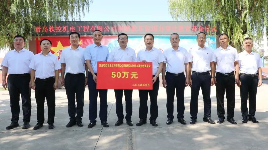 9月9日,在第 40 個教師節(jié)來臨之際,青島軟控機(jī)電工程有限公司向膠東街道捐贈教育基金50萬元。膠東街道黨工委書記朱本軍,膠東街道黨工委副書記、辦事處主任趙方毅,膠州市體育發(fā)展中心主任袁鵬,膠東街道人大工委主任史大勇,膠東街道黨工委委員、辦事處副主任宋剛,膠東街道人大工委副主任孫偉,膠東街道教育系統(tǒng)黨委書記史文江及教師代表出席,青島軟控機(jī)電工程有限公司總經(jīng)理武守濤、副總經(jīng)理俞一航及員工代表參加捐贈儀式。朱本軍、武守濤發(fā)表講話,袁鵬闡述了膠東教育未來的發(fā)展規(guī)劃,孫偉詳細(xì)介紹了近幾年膠東街道教育發(fā)展情況。